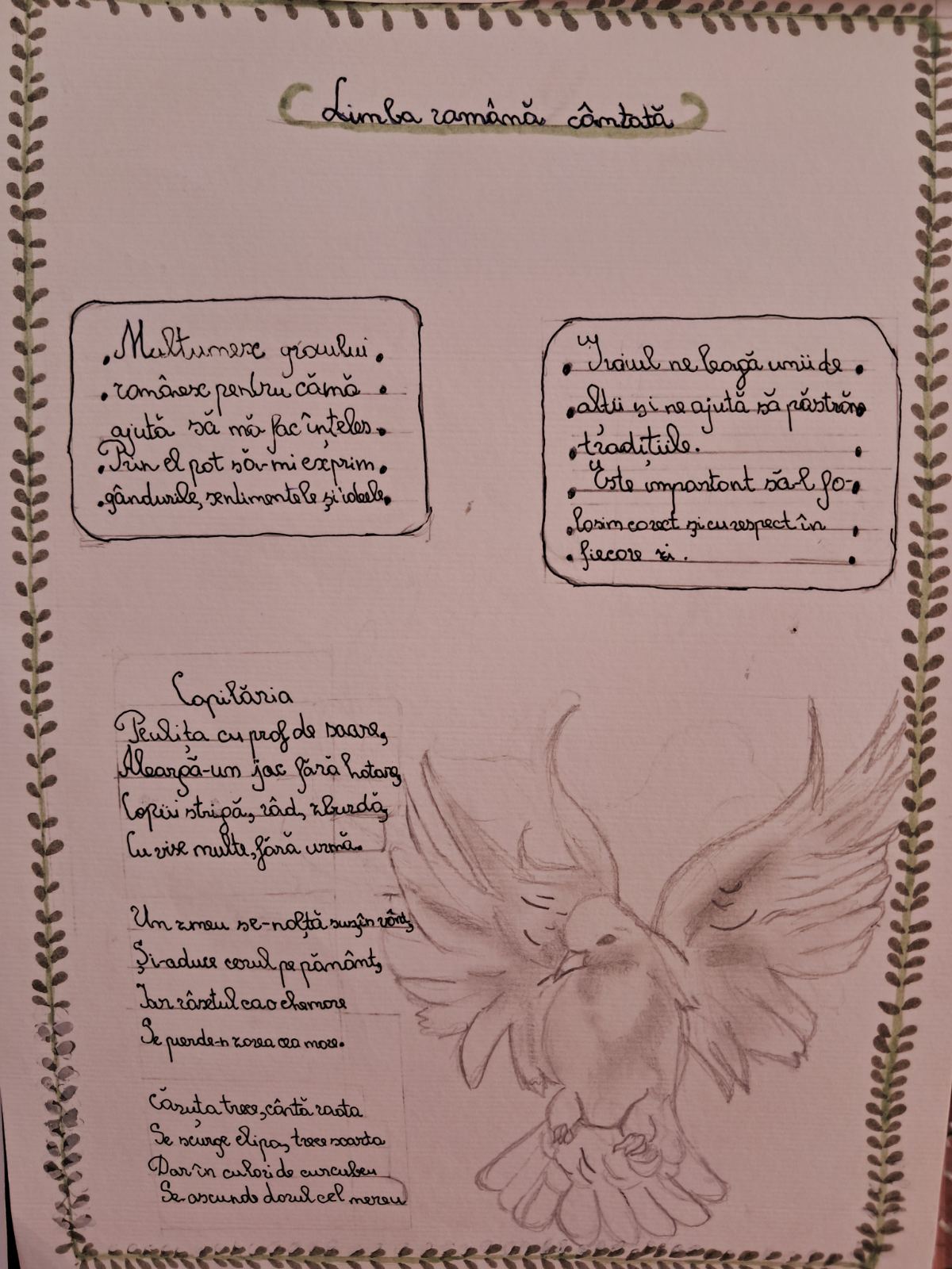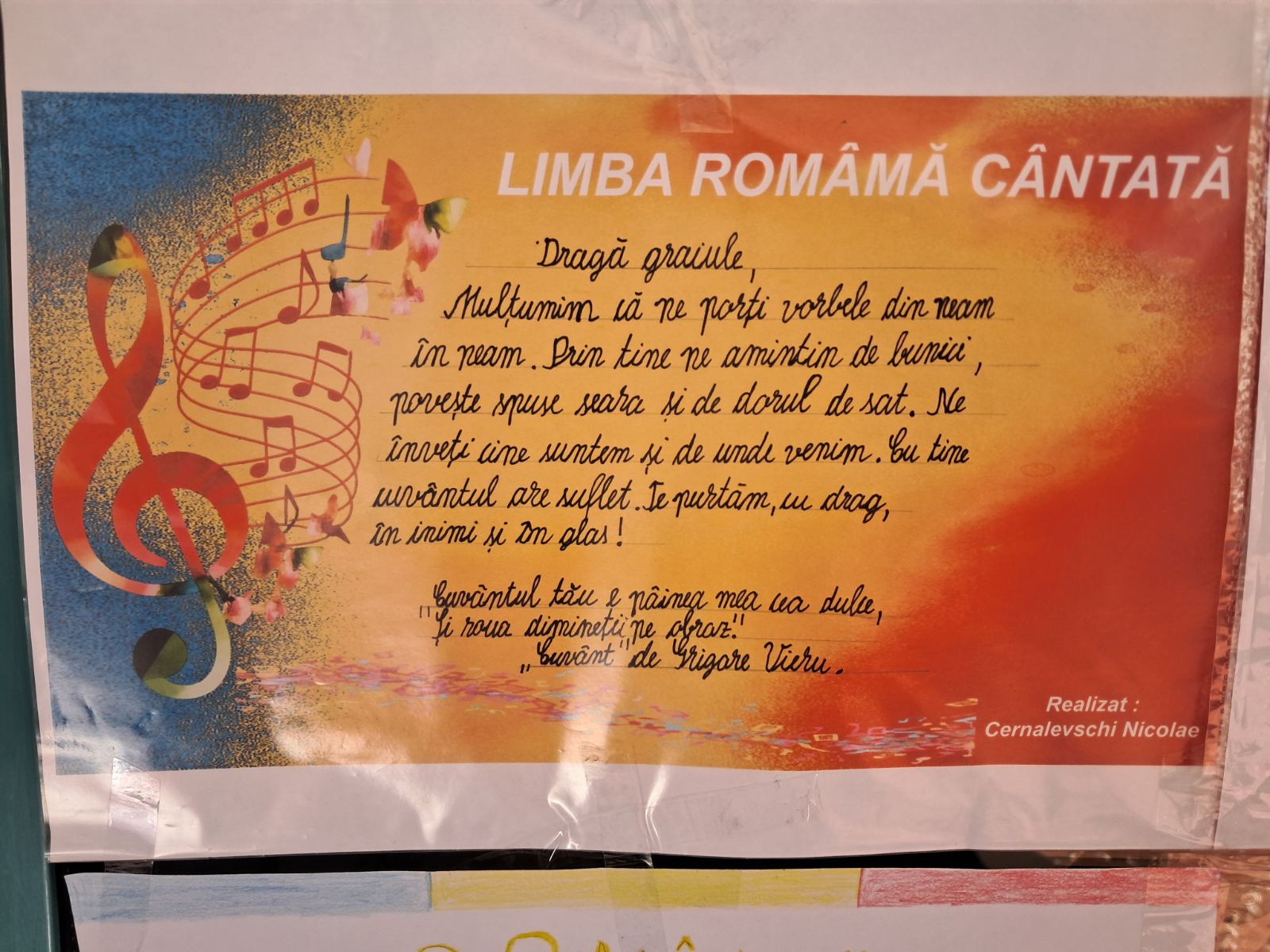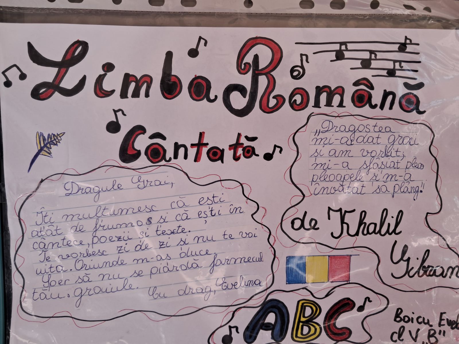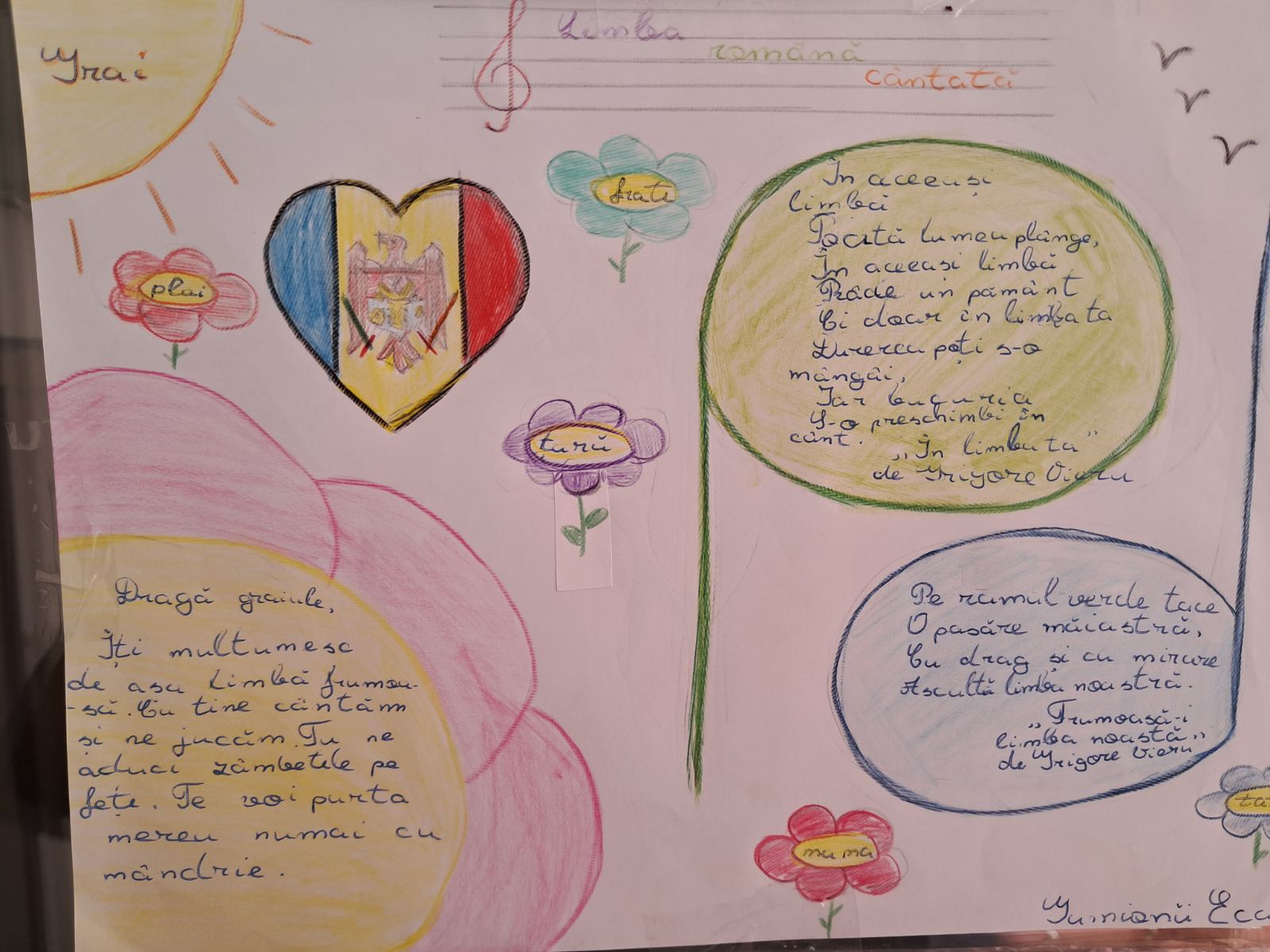 Copiii au îmbinat desenul și poezia, redând prin culori și versuri simbolurile statului, dar și frumusețea limbii noastre. Fiecare elev a scris o dedicație sau un gând de recunoștință adresat limbii române, exprimând prin cuvinte simple dragostea și respectul față de tezaurul spiritual al neamului.